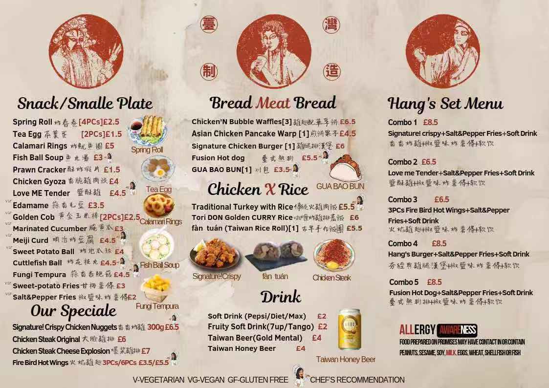 Welcome to Hang (Fried Chicken) Menu, where every bite is a flavorful journey! Nestled in the heart of Sheffield, our cozy spot on West St brings you the crispiest, juiciest fried chicken around. Whether you’re craving a classic crispy wing or looking to try something new, there’s something for everyone. Each dish is prepared with the finest ingredients and cooked to perfection, ensuring every meal is satisfying and delicious.